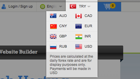 If the Automatic Currency Detection feature is disabled, all Prices will be displayed in your Selling Currency. Visitors can manually switch currencies from the currency drop-down in the SuperSite 2 Header bar, if they wish to see Prices in the local currency.